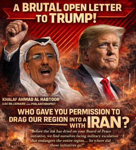 In the Iranian attacked neighboring country United Arab Emirates, this report notes, its most populous city is the global financial center Dubai, one of whose most powerful President Donald Trump allies is multi-billionaire businessman Khalaf Ahmad Al-Habtour, who stunned the world when he issued the brutal open letter: